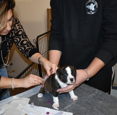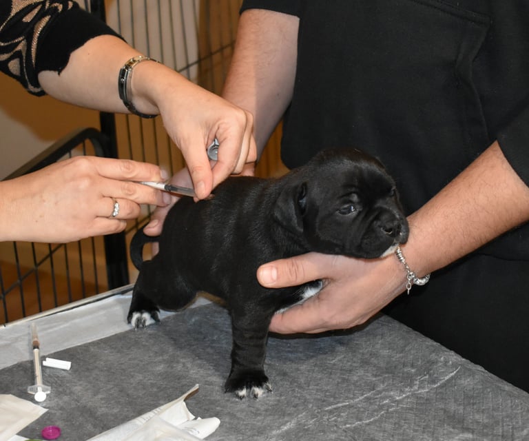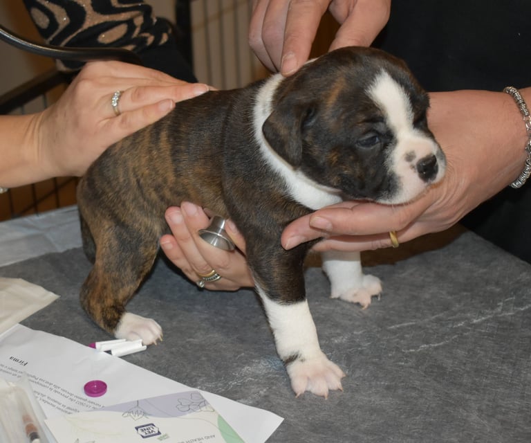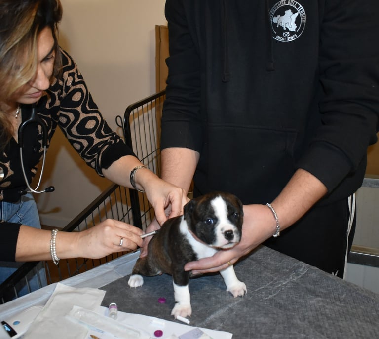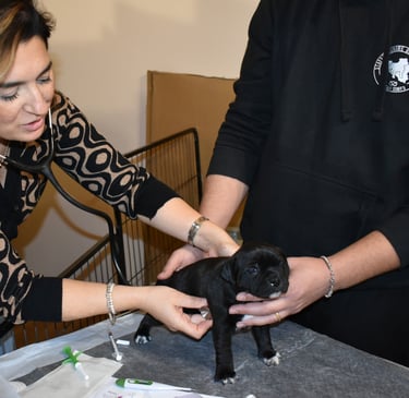 Visita della nostra veterinaria Annalisa: primo vaccino puppy e microchip per i nostri cuccioli di Staffordshire Bull Terrier