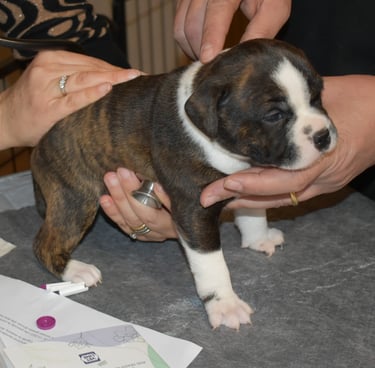La salute dei nostri Staffordshire Bull Terrier è sempre la nostra priorità. Per questo abbiamo organizzato una visita a domicilio con Annalisa, la nostra veterinaria di fiducia, così da evitare ai cuccioli qualsiasi rischio di contagio legato agli ambienti ambulatoriali e garantire il massimo comfort e sicurezza.