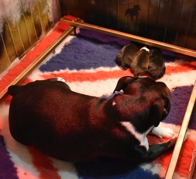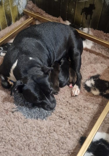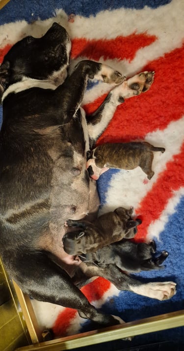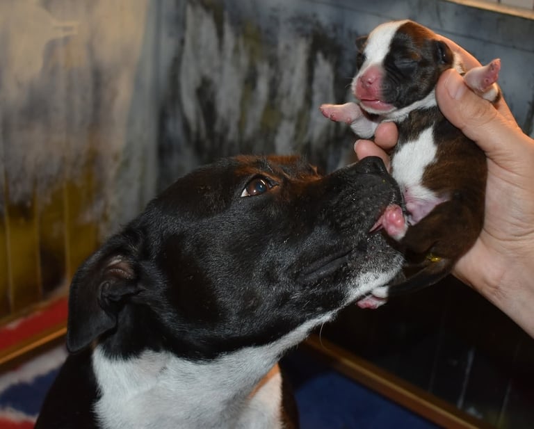 Restate aggiornati per scoprire nuovi momenti della cucciolata Kubra e Zeus e vedere i cuccioli di Staffordshire Bull Terrier crescere sani e felici! 🐾💛