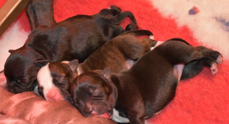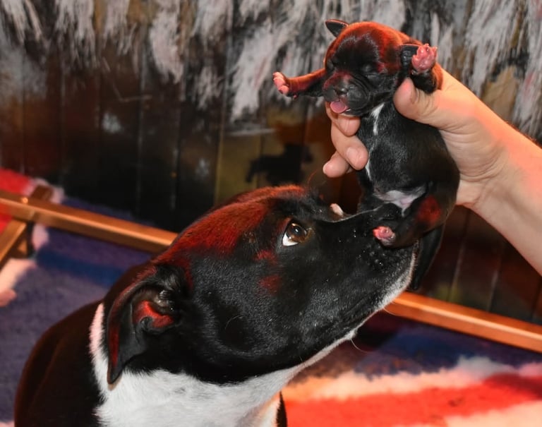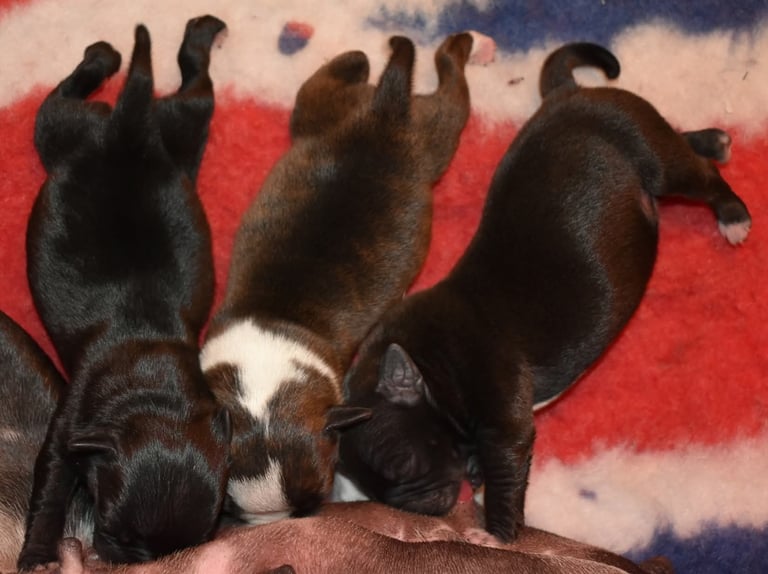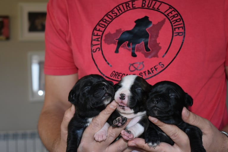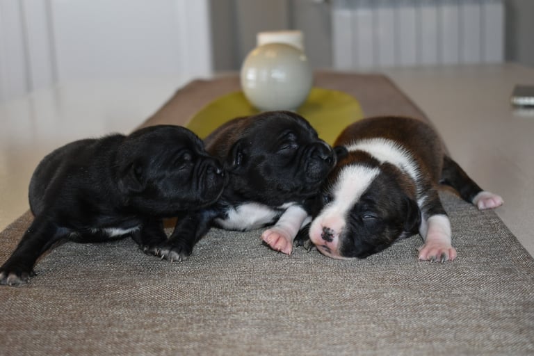 Siamo entusiasti di condividere le ultime tappe evolutive della nostra cucciolata di Staffordshire Bull Terrier figli di Kubra e Zeus!
