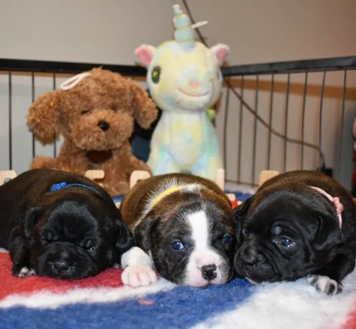 Siamo entusiasti di condividere con voi un nuovo capitolo nella vita dei nostri piccoli Staffy! A più di tre settimane, i nostri cuccioli sono passati da esseri dormienti e dipendenti a piccole creature curiose e dinamiche.