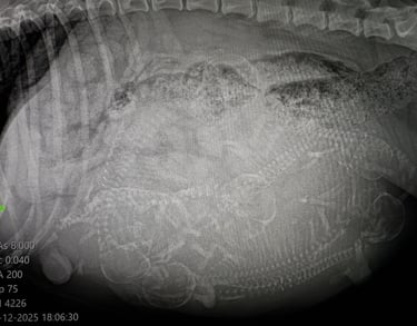 Ieri abbiamo effettuato la radiografia alla nostra cagnolina e sono risultati 5 cuccioli, con la possibilità di un sesto cucciolo ancora da confermare. Dall’ecografia abbiamo potuto vedere che tutti i cuccioli stanno bene e stanno crescendo regolarmente.